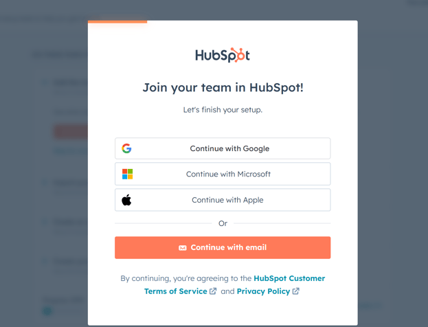 2. Click Join Hubspot and “Continue with email” including your name
